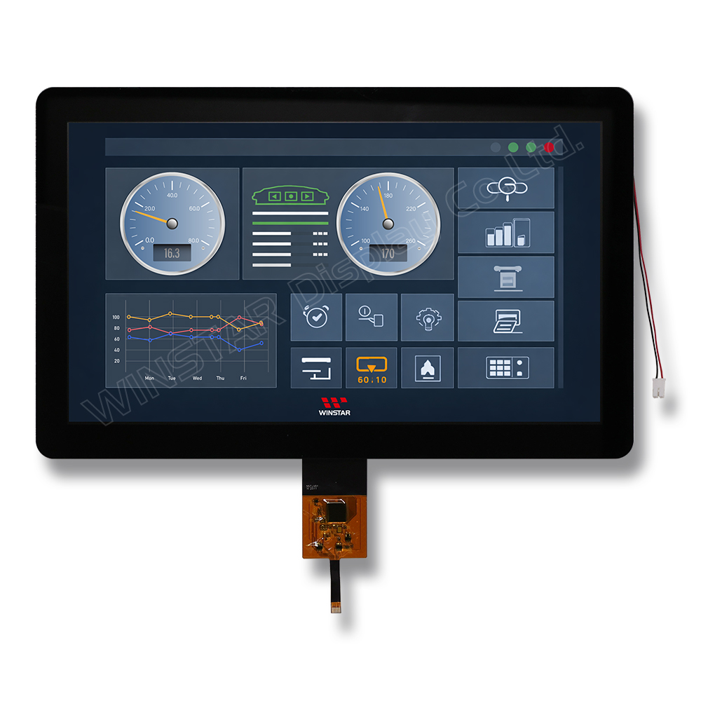 Le module intègre un panneau tactile capacitif projeté (PCAP) avec prise en charge de jusqu’à 10 points multi-touch, piloté par le contrôleur ILI2511 ou équivalent. La communication tactile est prise en charge via interface USB de communication, avec I²C disponible pour une architecture système flexible.