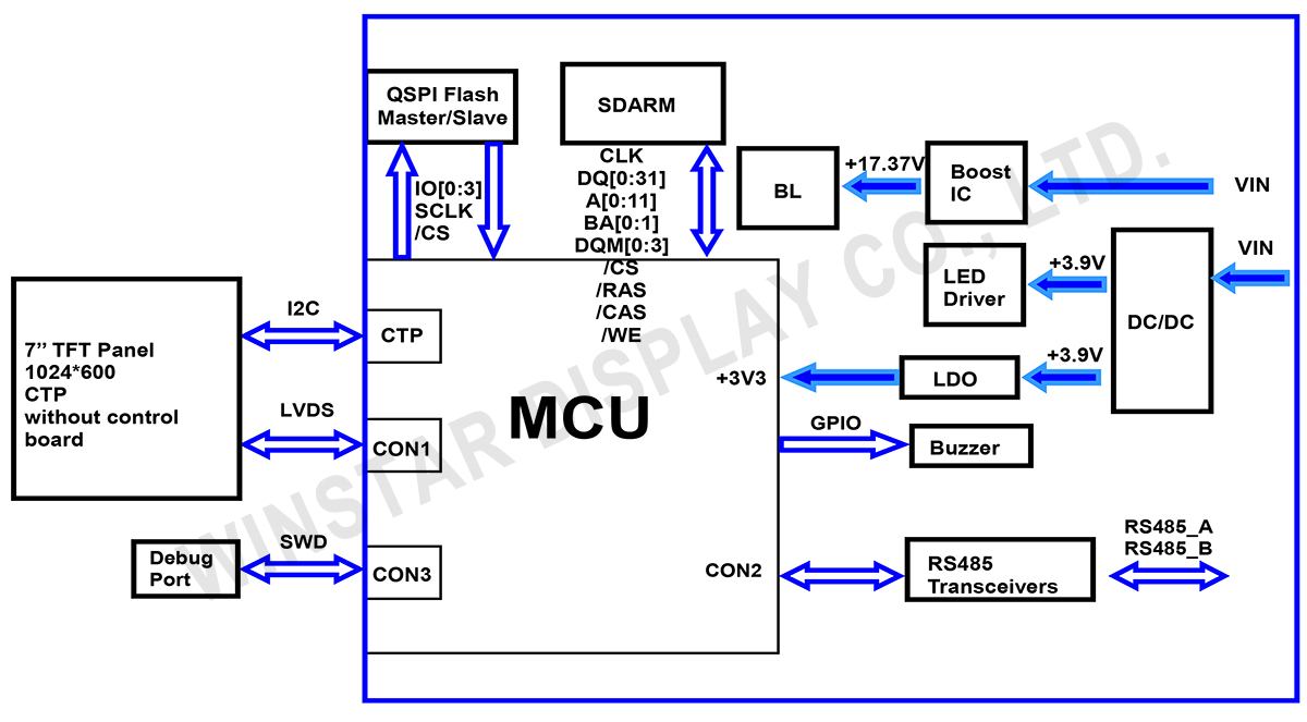 - Projeksiyon kapasitif dokunmatik panel (PCAP) ve buzzer kontrolü desteği (ana cihaz tarafından kontrol edilir).